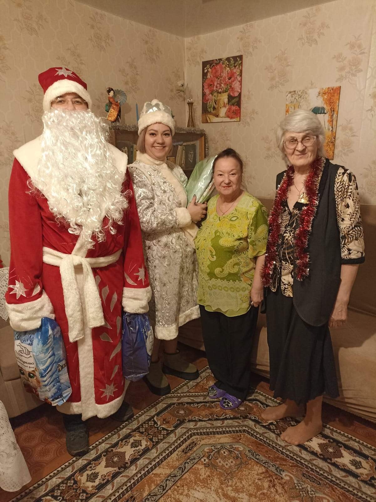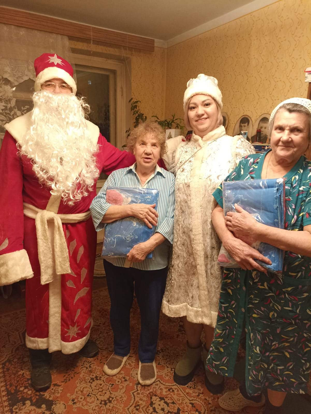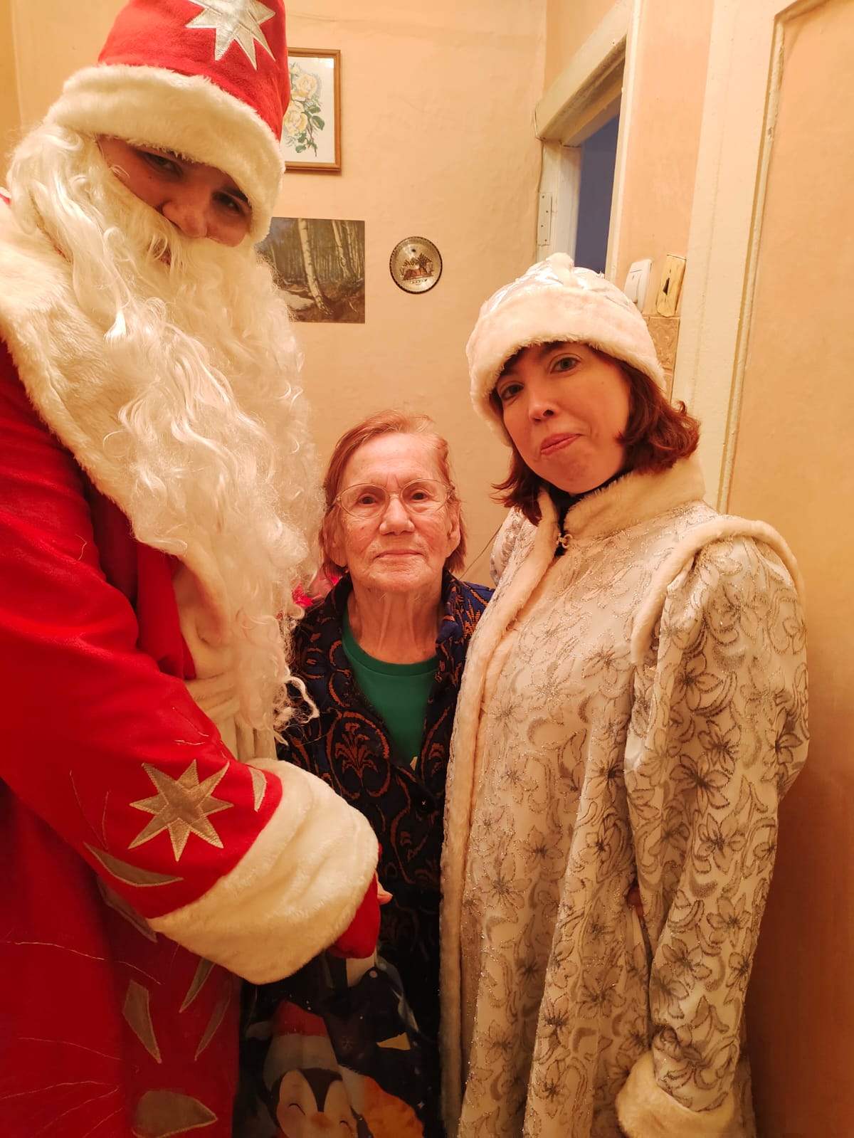 В преддверии Нового года заведующая отделением социального обслуживания населения на дому Лариса Мокина совместно с представителями Благотворительного фонда "Фонд Новоуральска" навестили с поздравительным визитом наших получателей социальных услуг на дому. Маленькую сказку, маленькую радость, маленькое чудо внесли в каждый дом наших подопечных замечательные Дедушка Мороз и Снегурочка.