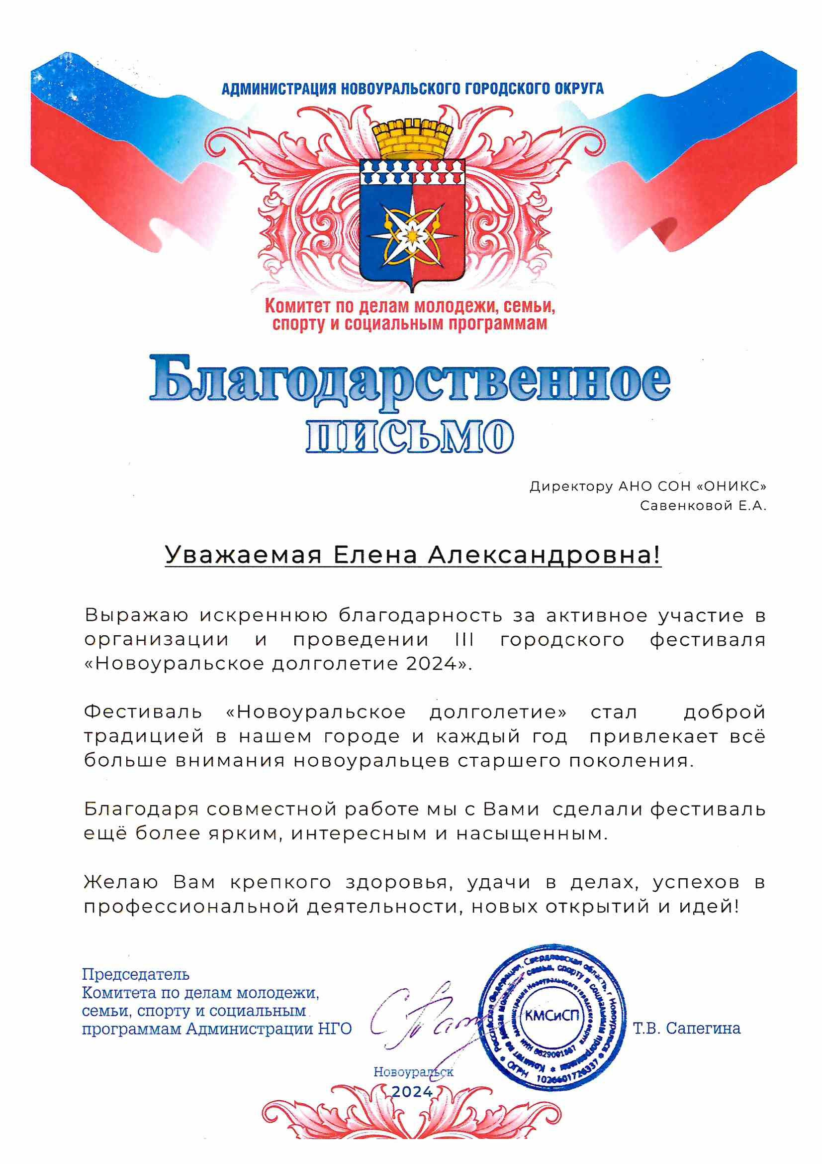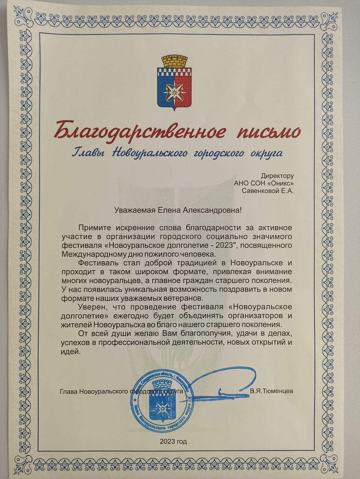 Администрация АНО СОН «ОНИКС» выражает благодарность администрации МАОУ «Гимназия» за внимание, душевные поздравления для одиноких людей!
